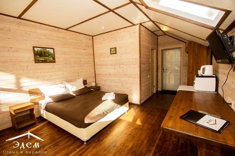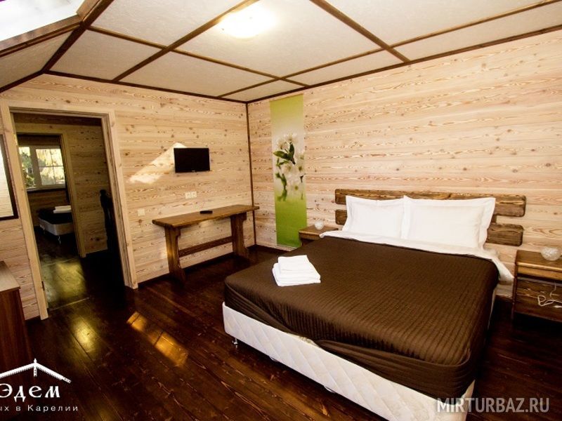 База отдыха «Эдем» находится в 30 км от Петрозаводска (40 мин. на автомобиле). Здешний отдых подойдет для всей семьи. Здесь вы сможете провести каникулы или выходные с детьми, отметить семейный праздник или просто отдохнуть с ребенком на свежем воздухе. На территории базы отдыха «Эдем» есть детский городок, живой уголок с кроликами, кормушки для лесных птиц, и детский бассейн на озере у пирса. Вы покажете детям, как грести лодку, научите рыбачить, собирать ягоды и грибы.