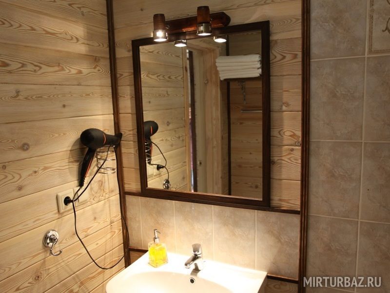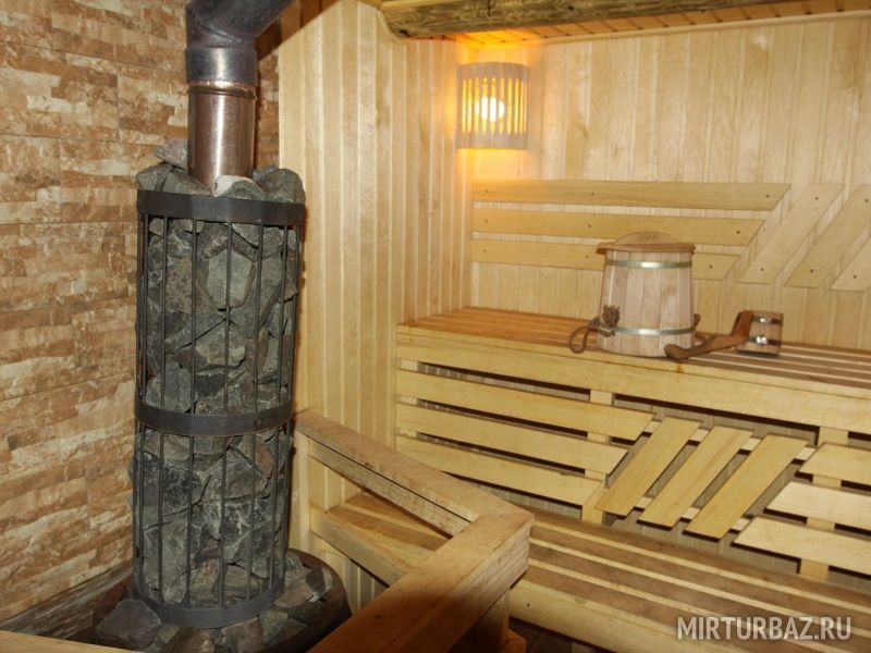 Финская сауна и русская баня готовы принять до 6 человек. В бане четыре помещения: раздевалка, моечная с душем, парилка, комната отдыха.