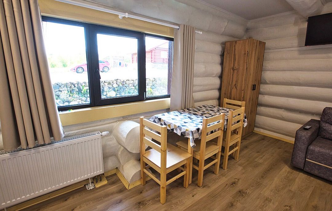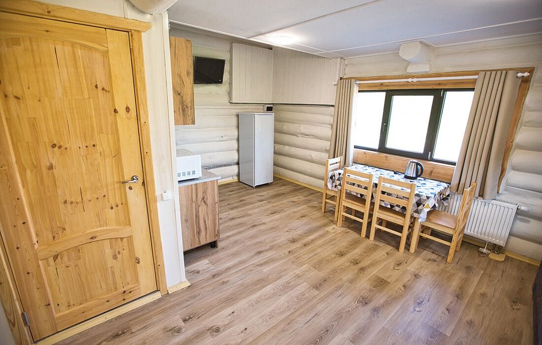 К вашим услугам деревянные коттеджи с мини-кухней, санузлом с душем и телевизором. Интерьеры оформлены в приятном деревенском стиле с использованием натурального дерева.