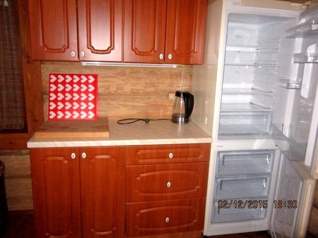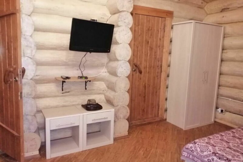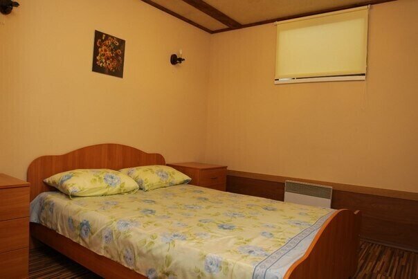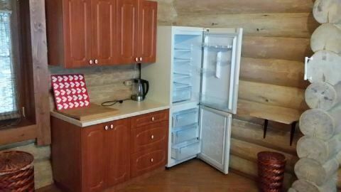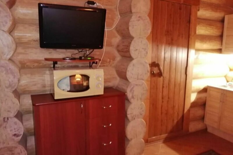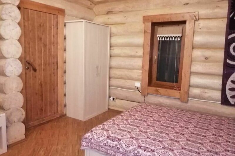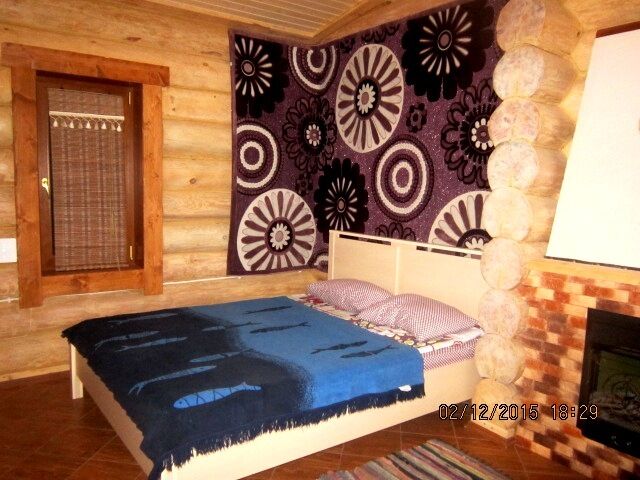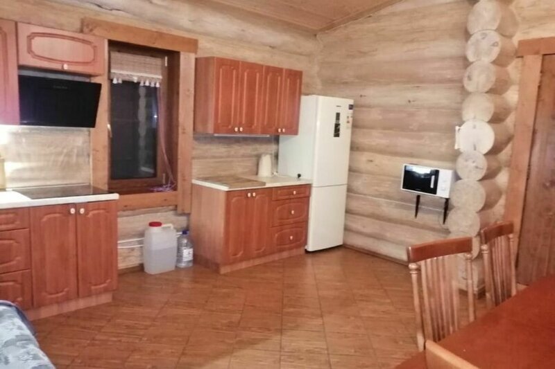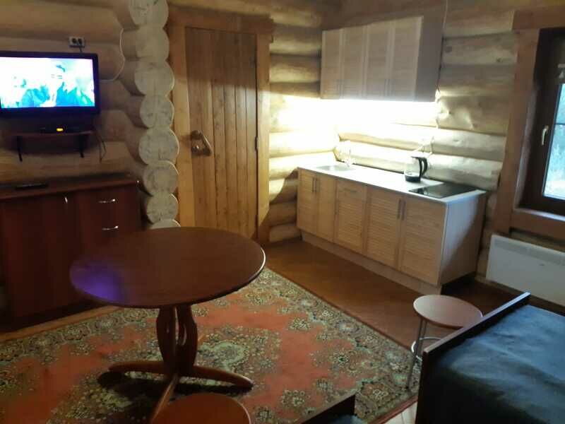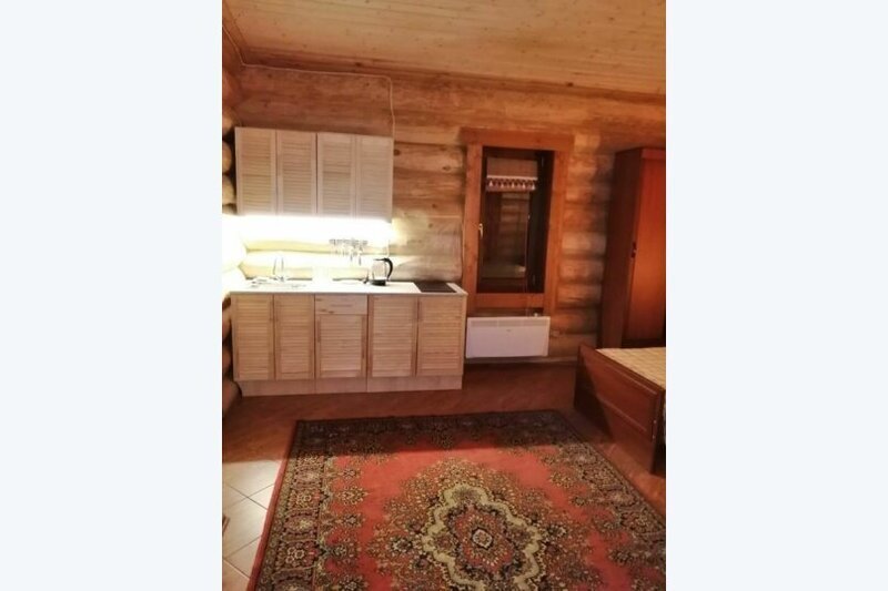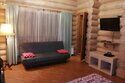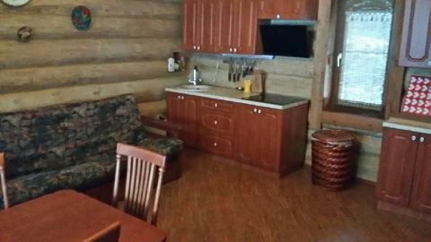 Половина Спальня и кухня-гостиная: 2-х спальная кровать и диван раскладной, на кухне стол обеденный. Диван, бытовая техника, посуда. душ, санузел. С видом на озеро.