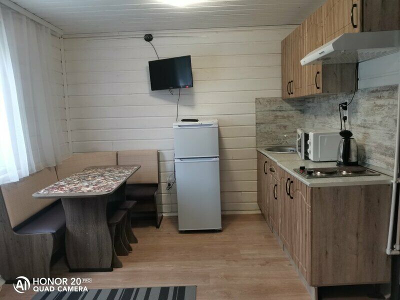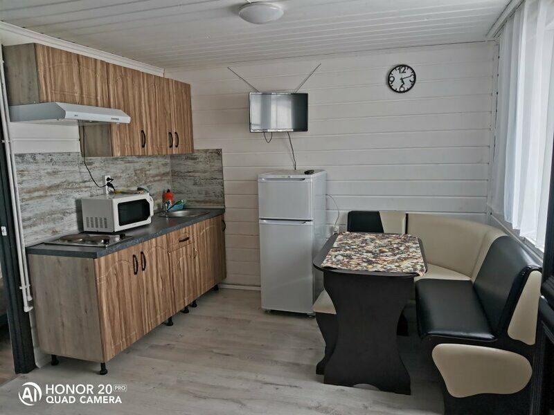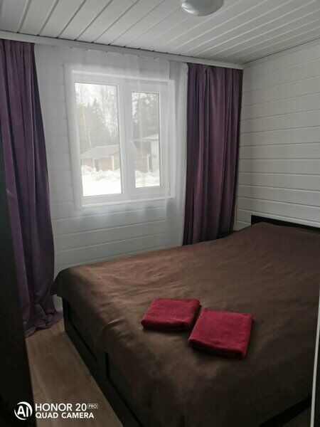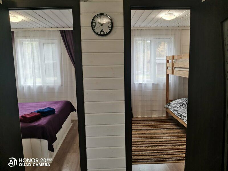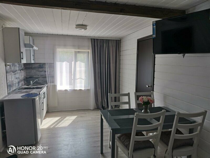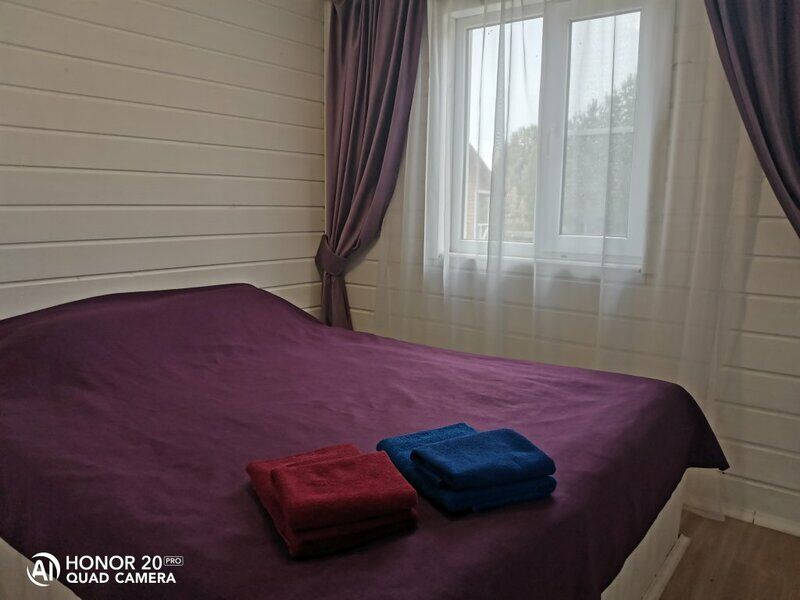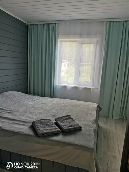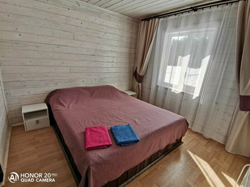 Дом на 4х человек. В доме две спальни(двуспальная кровать и две односпальные) , кухня, санузел. На кухне есть плита, микроволновка, чайник, холодильник, посуда. Постельное белье и полотенца.