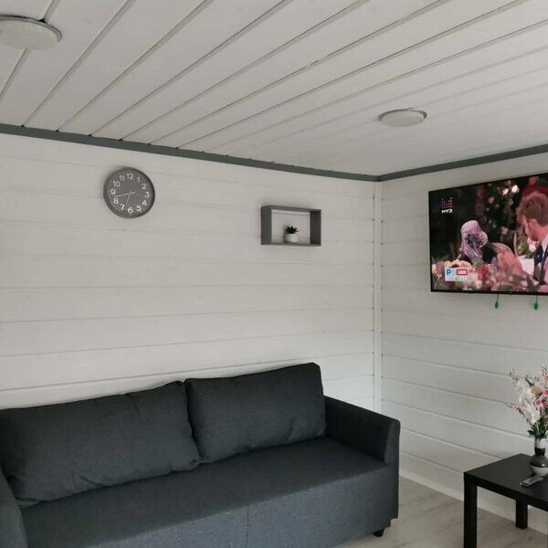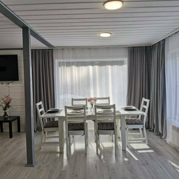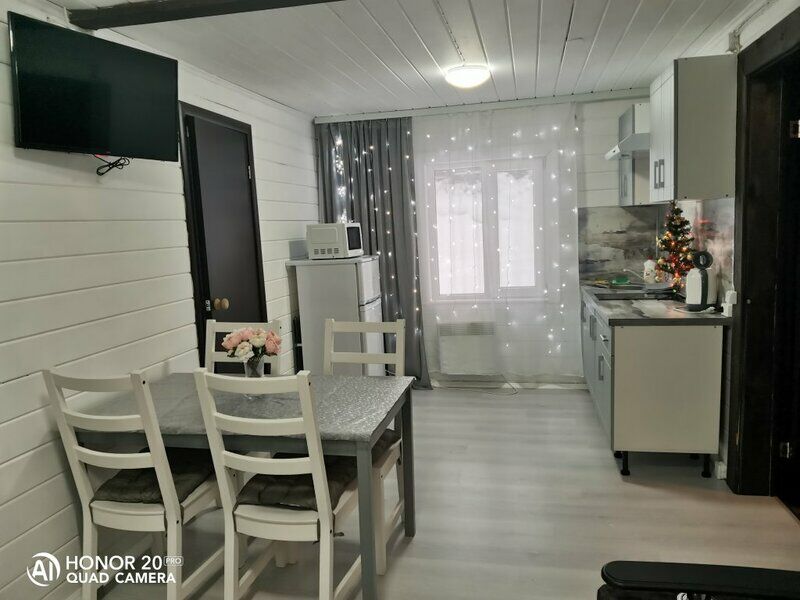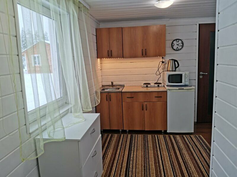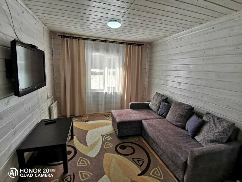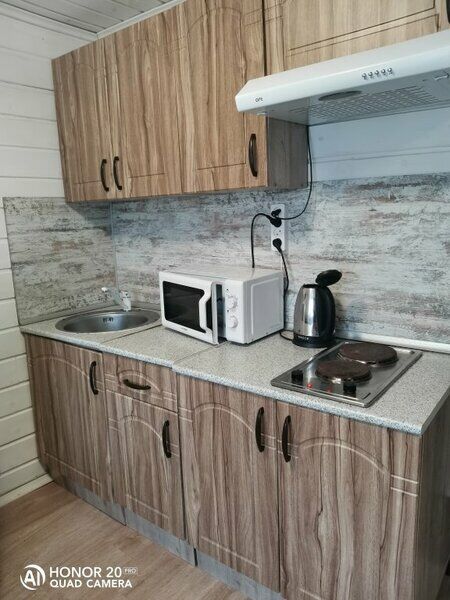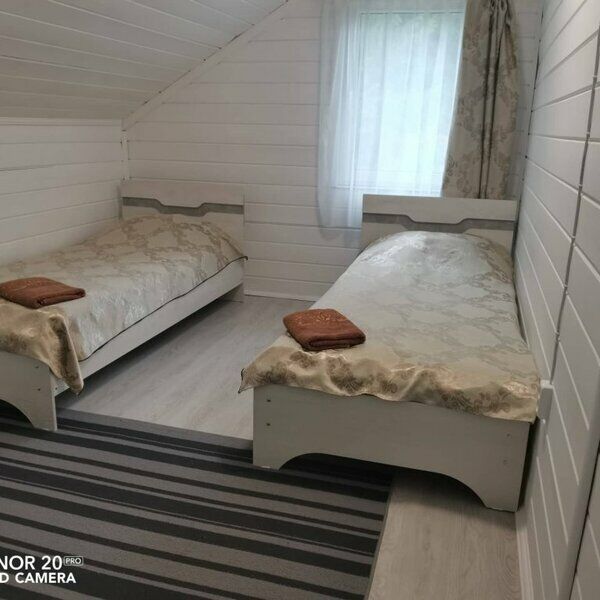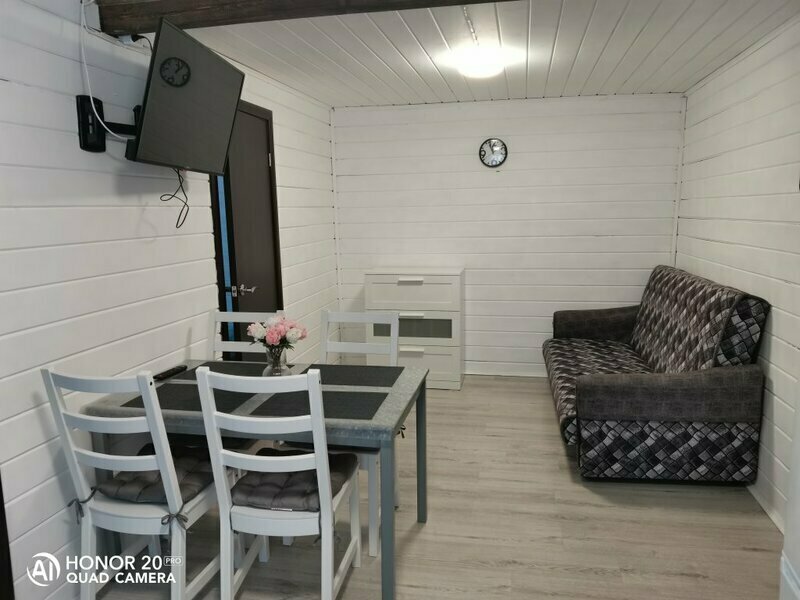 Дом на 4х человек. В доме две спальни(двуспальная кровать и две односпальные) , кухня, санузел. На кухне есть плита, микроволновка, чайник, холодильник, посуда. Постельное белье и полотенца.