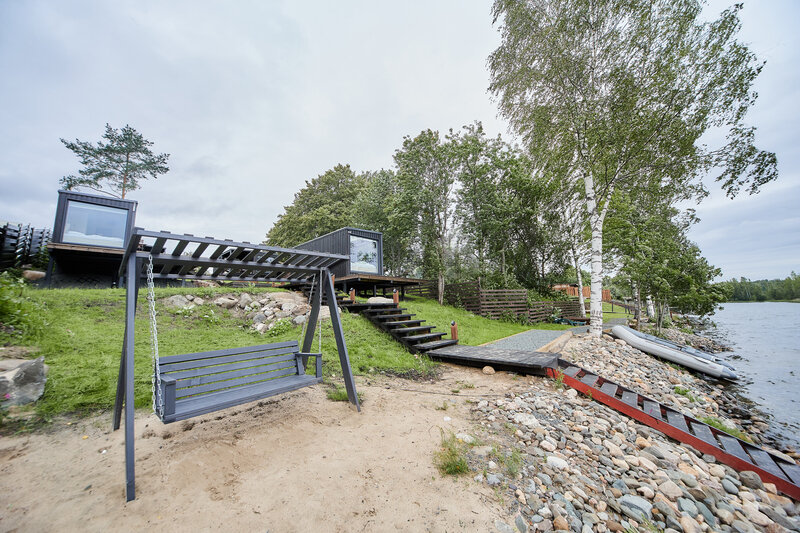 Глэмпинг «4 Стихии» — отличное место для отдыха от повседневной суеты и для работы в уединенной атмосфере природы. Он расположен на перекрестке двух озер в Карелии, всего в 20 минутах езды от аэропорта.