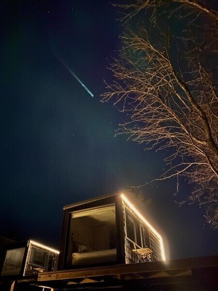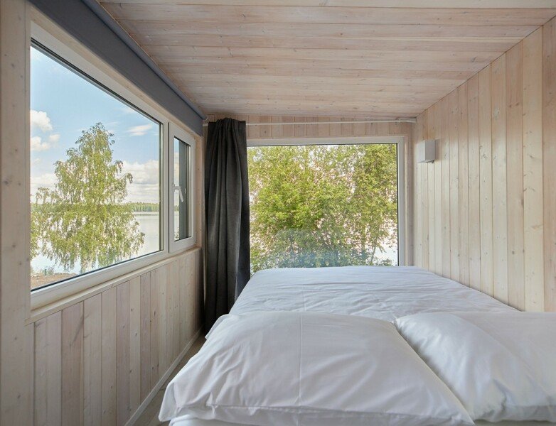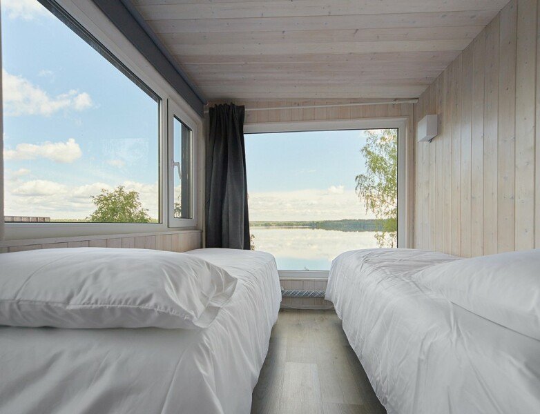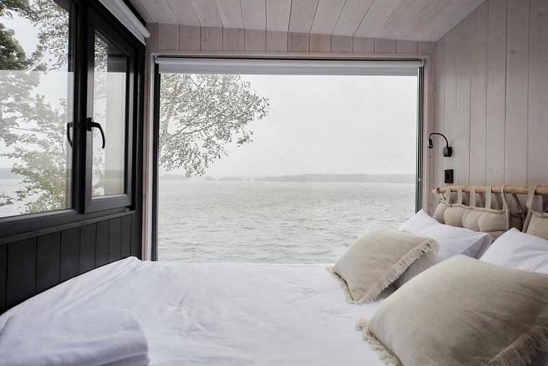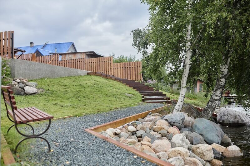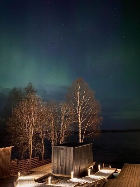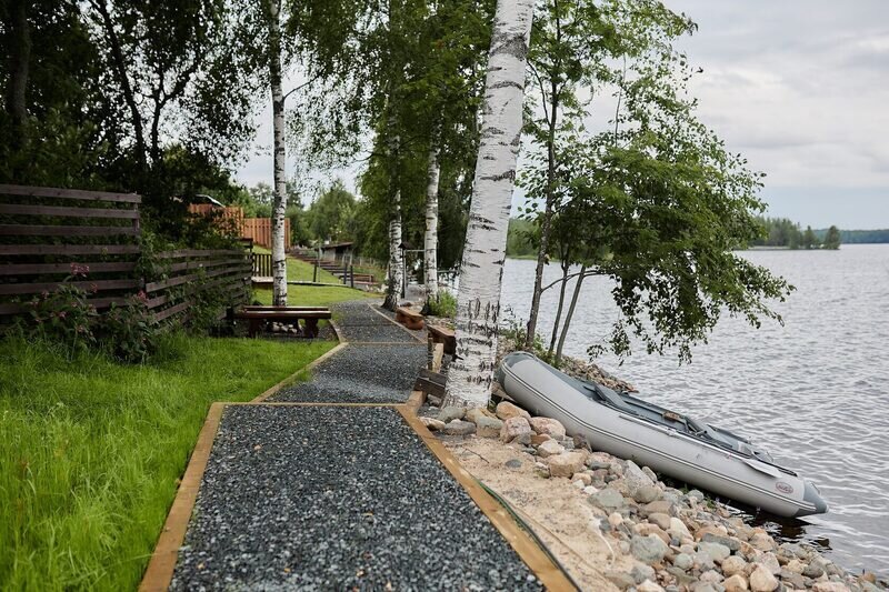 На территории глэмпинга расположены 4 комфортабельных домика, оснащенных всем необходимым для вашего проживания. Имеется собственный пляж, где вы сможете насладиться купанием и отдыхом на берегу воды. Также на территории есть баня с чаном, где вы сможете расслабиться и насладиться атмосферой природы. Гостям предоставляют лодку и каяки, чтобы вы могли исследовать окружающие озера и насладиться прекрасными пейзажами.