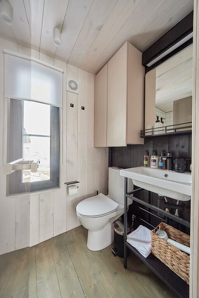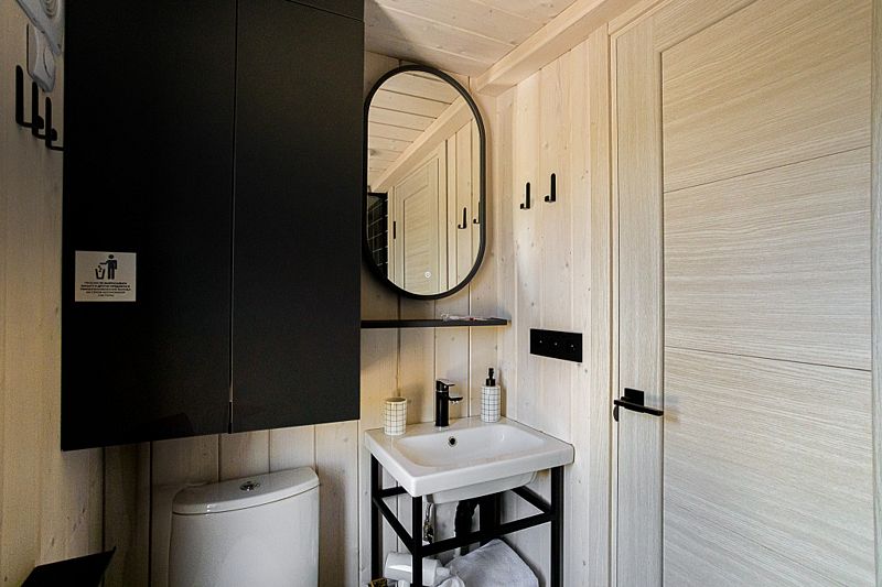 Абсолютно новый домик полностью из дерева с кроватью 160*200 или раздельными 80*200 на выбор, с двориком, кухней, душевой с туалетом и с сауной во дворе за дополнительную оплату.