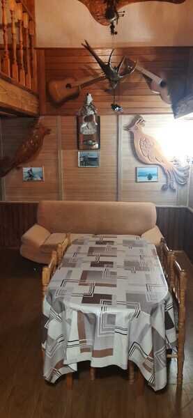 Гостевой дом №1 расположен на 20 сотках, полностью закрытая территория с летней и зимней беседкой, мангалом, барбекю. Для размещения гостей предоставляются три отдельные комнаты.Дом рассчитан : на 6 основных мест + 3 дополнительных места. Первая комната: 12 кв. м.на втором этаже , спальные места: кровать двуспальная; дополнительное спальное место - детская кровать, прикроватные тумбочки ,стулья. Вторая комната: 13 кв. м. на втором этаже ,спальные места - две кровати "полуторки"; платяной шкаф, прикроватная тумбочка, стулья. Третья комната: 16 м.кв. на первом этаже ,спальные места- две кровати lполуторки; + печь лежанка. Четвёртая комната: (проходная) 12 м.кв., с библиотекой, кресла , стол, тахта; На первом этаже общая кухня-столовая 20 кв. м. Печь "шведка" и "лежанка", закрытый камин, оборудованная кухня с посудой, диван,2 кресла, обеденный стол и стулья, холодильник, микроволновая печь, мультиварка. Плазменный телевизор. Спутниковое ТВ .Пастельное бельё входит в стоимость проживания. Туалет с душевой кабинкой также расположен на первом этаже дома, в санузле тёплый пол, бойлер на 100 литров, стиральная машина, артезианская вода со своей скважины. БАНИ. 1.Баня русская на дровах( 38 м.2 .большая комната отдыха 14 м2 с кухней , камин, спутниковое ТВ, эл.чайником, микроволновкой, парилка , душевая кабина, эл.бойлер на 100 литров, большая веранда, рядом мангал, беседки) 2.Баня из бруса Карельской сосны , год постройки 2016.Большая комната отдыха с кухней, микроволновой печью, самоваром, уютная парилка на 2 человек, бойлер на 50 литров, во дворе беседка для отдыха, мангал. (за дополнительную плату чай из самовара на Карельских травах, домашние варенья, мёд с пасеки.)