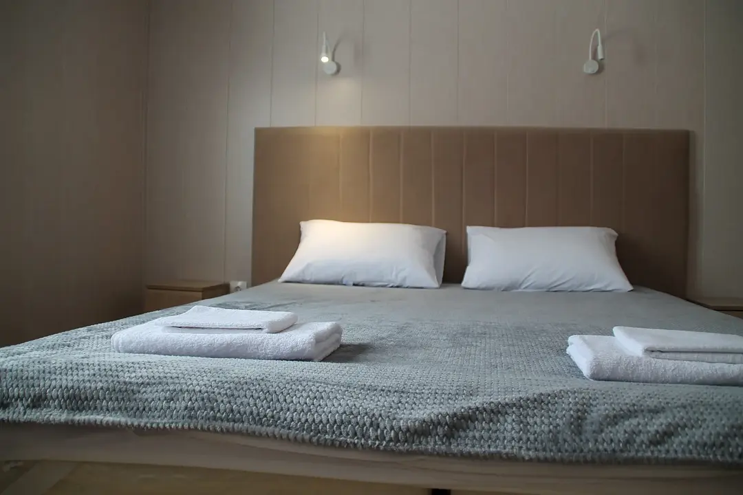 2х-комнатный номер с 1 двуспальной кроватью и односпальной кроватью. Санузел (душ)