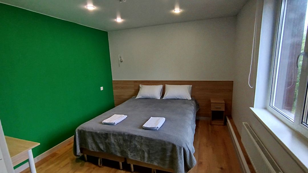 Двухместных номер с большой кроватью. Прихожая, отдельный вход. В номере свой санузел с душевой кабиной. Центральное отопление, бойлер, полотенцесушитель, фен, сейф.
