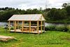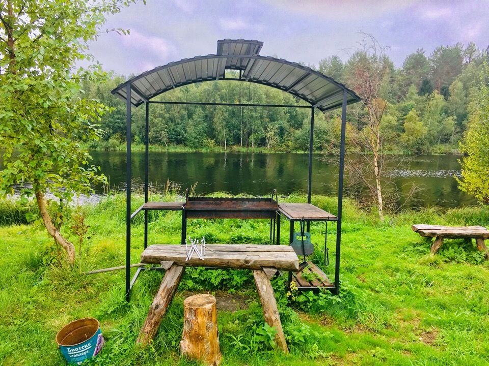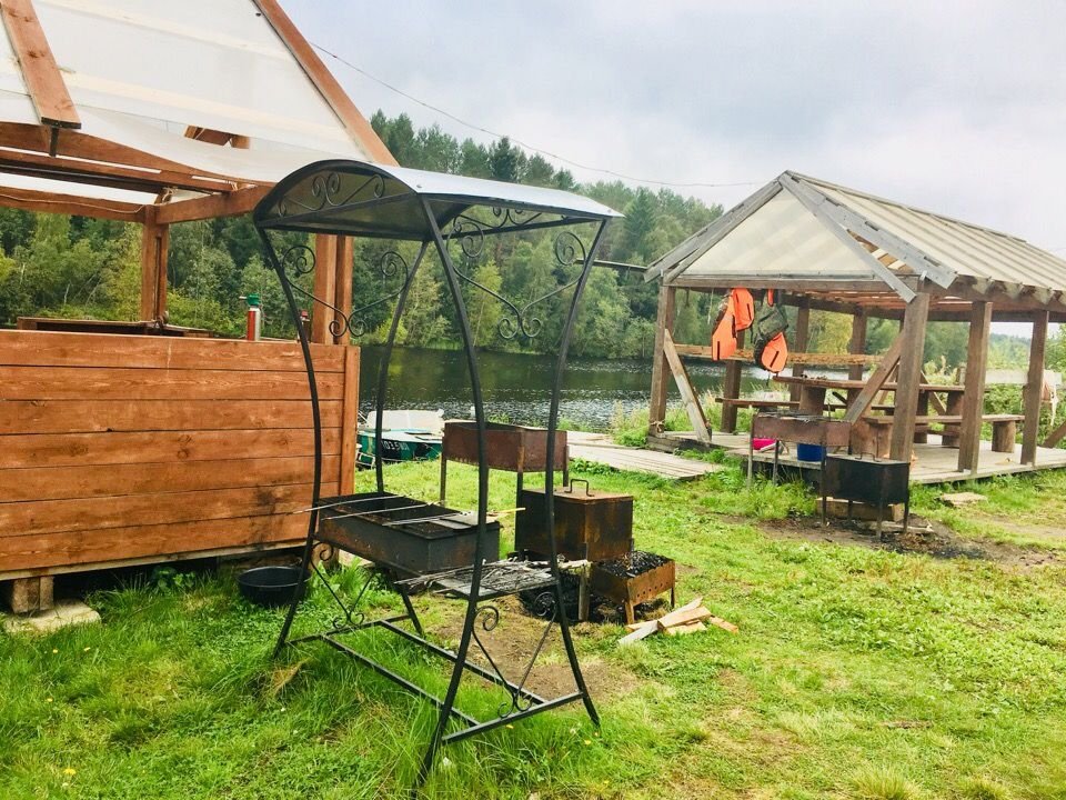 На берегу реки вы найдёте мангал с шампурами и решеткой, а также коптильню.