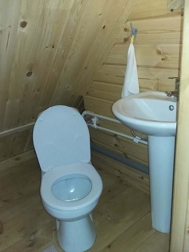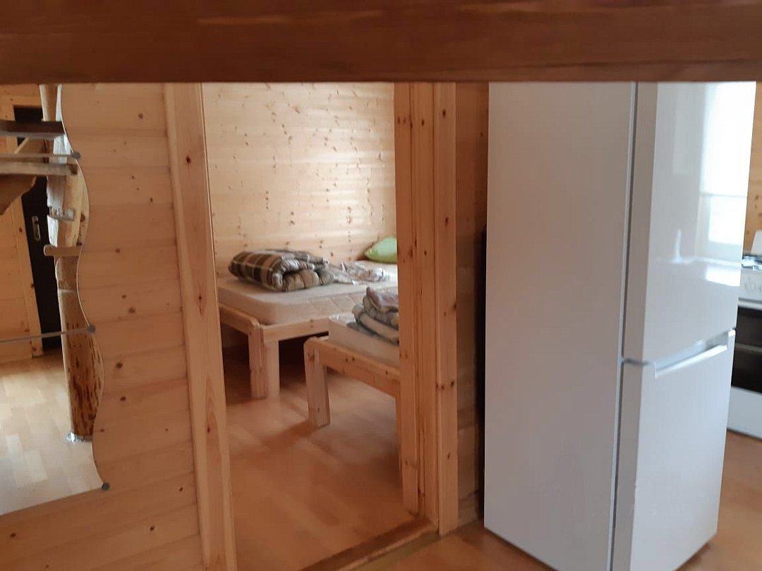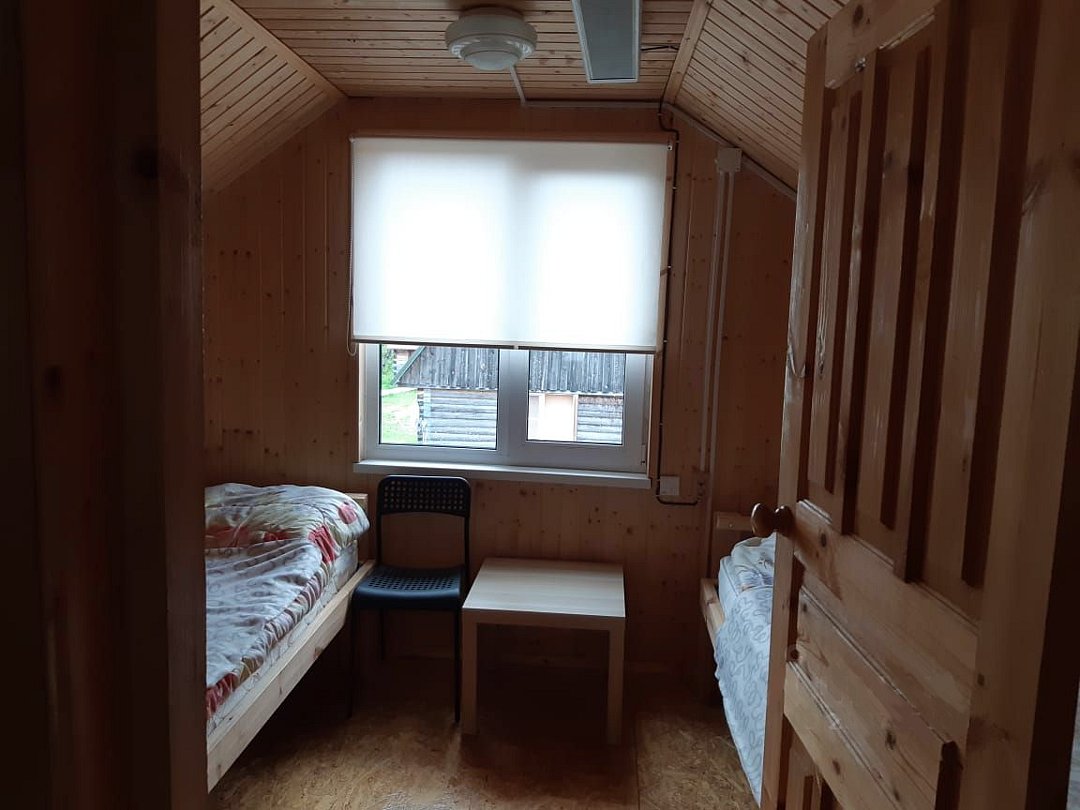 На втором этаже: две спальни, в которых по две односпальные кровати, одна спальня на трех человек с двуспальной и односпальной кроватями. При необходимости есть детская кроватка. На втором этаже также есть туалет с раковиной и унитазом. Для всех гостей предусмотрено постельное белье и банные полотенца, в туалетах полотенца для рук, на кухне полотенце для посуды и необходимые моющие и чистящие средства. Для отопления и создания комфортного климата служит печь на дровах. Топка со стеклянной дверцей находится в гостиной. В качестве дополнительного отопления на первом этаже предусмотрен электрический теплый пол, а на втором этаже в спальных комнатах настенные электрические обогреватели с регуляторами температуры