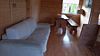 В доме на первом этаже: спальня с двухместной кроватью, кухня-гостиная с газовой плитой, холодильником, микроволновой печью, посудой и столовыми приборами, телевизором с кабельными каналами, туалетная комната с унитазом, раковиной и душевой кабиной с туалетными принадлежностями, лестница на второй этаж.