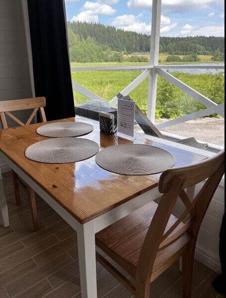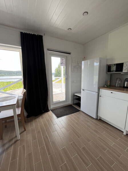 Новый минидом, дата постройки 2023. Панорамный вид на Ладогу. Находится на берегу залива Оръятлахти Ладожского озера. Удобен для пар. Детская кроватка по запросу. Пирс, сауна, BBQ.