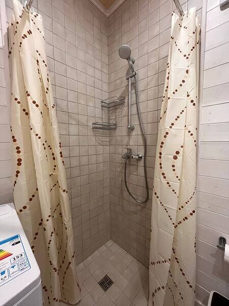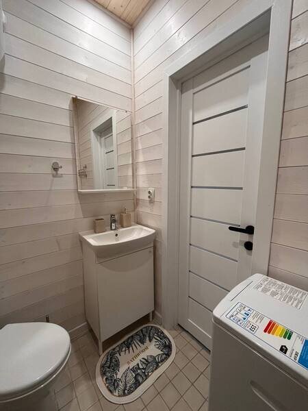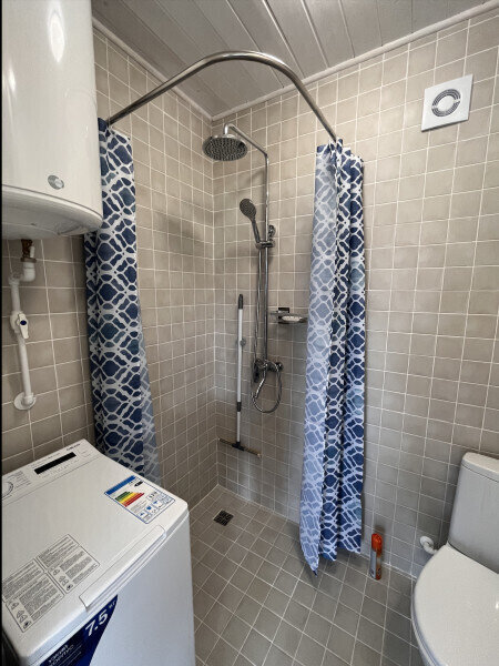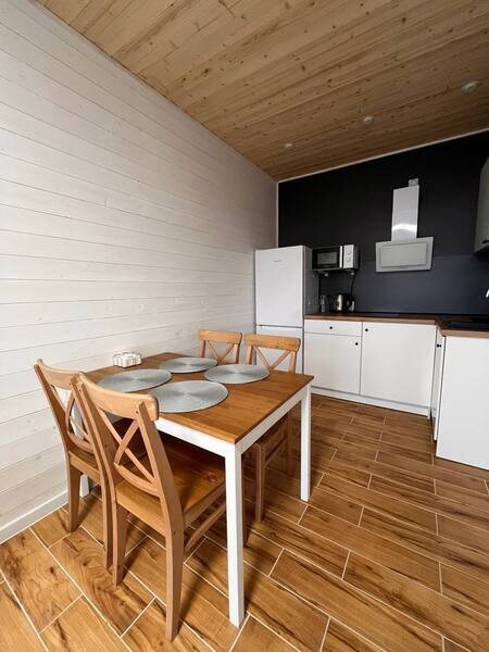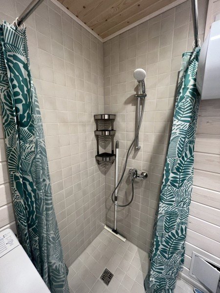 Дом оборудован для круглогодичного проживания: есть теплые полы в качестве отопительных приборов, кухня, санузел с душем и стиральной машиной. Для удобства гостей есть принадлежности для уборки и приготовления пищи, в том числе принадлежности для барбекю.