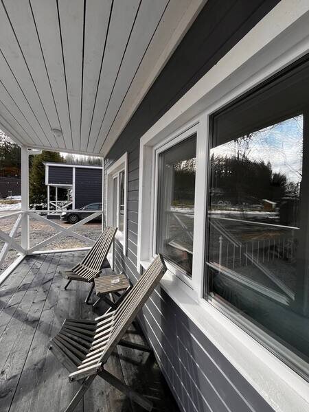 Новый дом, дата постройки 2023. Панорамный вид на Ладогу. Находится на берегу залива Оръятлахти Ладожского озера. Удобен для пар. Детская кроватка по запросу. Пирс, сауна, BBQ.