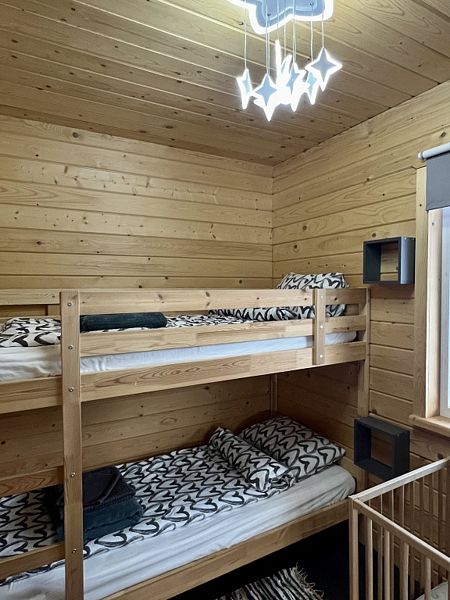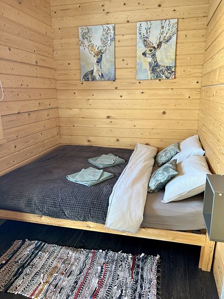 В доме две спальни, в одной – широкая кровать с матрасом 160*200, в другой – двухъярусная кровать 90*200;