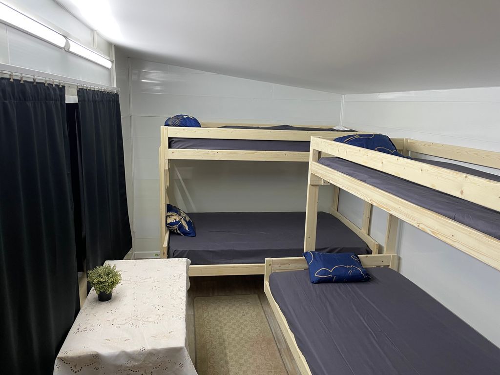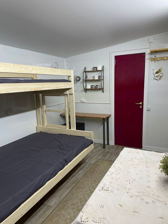 Трехместный номер с двухъярусной и полутороспальной кроватями и общими удобствами.