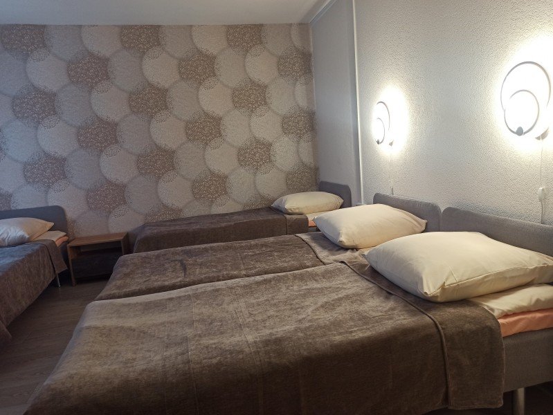 Одна односпальная кровать, одна двуспальная кровать, одна диван-кроватьВ гостиничном номере