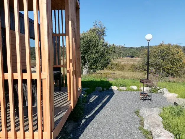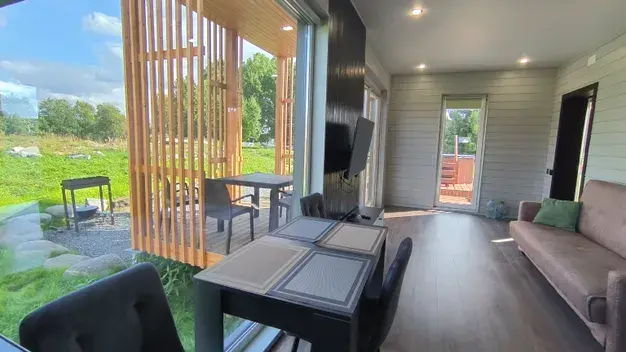 Дома расположены на первой линии от берега, предлагая вам захватывающий вид на бескрайние просторы Ладоги и неповторимые закаты. В каждом доме созданы все условия для комфортного и беззаботного отдыха. Просторные и уютные домики оснащены всем необходимым: удобными кроватями и раскладными диванами для комфортного сна, современной сантехникой для вашего удобства, кондиционером для поддержания приятной температуры в любое время года, теплыми полами для уюта даже в прохладные вечера, и полностью оборудованной кухней с необходимой посудой, микроволновой печью и плитой, позволяющей готовить любимые блюда.