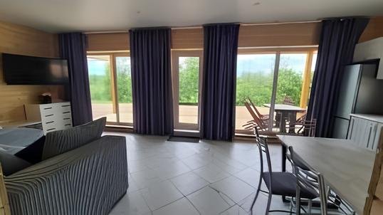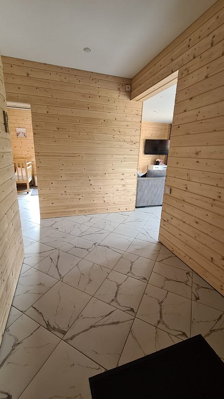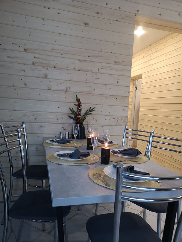 Для проживания гостей подготовлены комфортабельные одноэтажные дома с террасой, на территории одного из домов есть купель. В каждом доме имеются удобные спальные места, просторная кухня-гостиная, оснащенная современной бытовой техникой и посудой, санузел с душем. Все полы в домах с подогревом.
