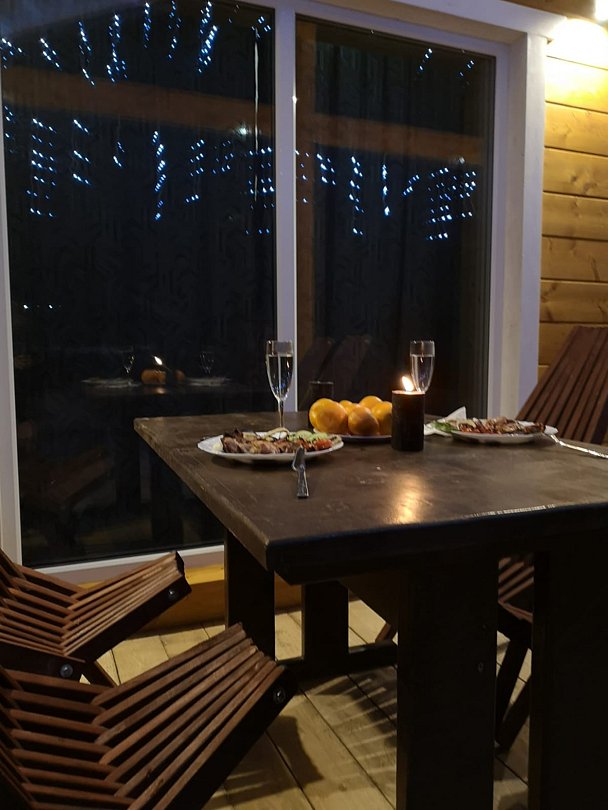 Отдыхающие могут воспользоваться мангальной зоной, а за дополнительную стоимость доступна теплая купель. На территории имеется горка, где зимой дети могут покататься. Летом можно купаться и загорать на песчаном речном пляже. Туристы, путешествующие на автомобиле, могут припарковать его около своего гостевого дома.