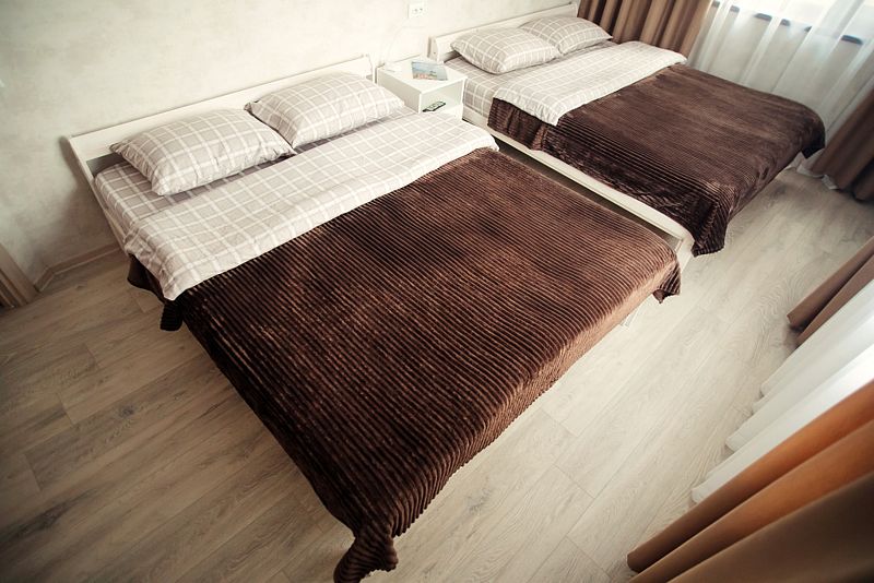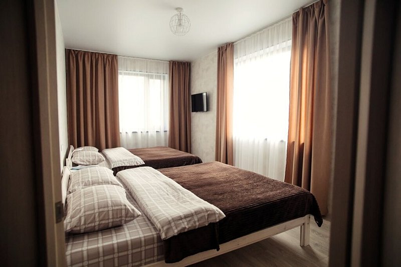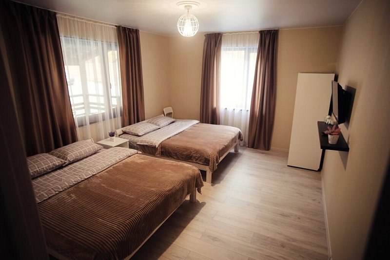 В каждой комнате в распоряжении гостей 2 кровати, шкаф для белья, телевизор.