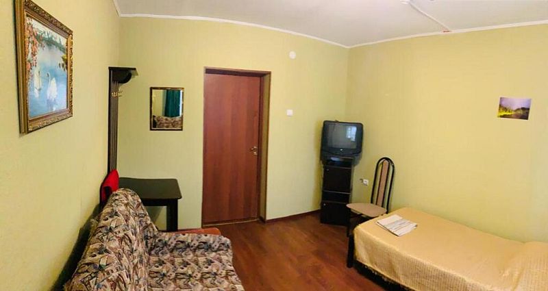 В номере вы найдёте телевизор. Оснащение зависит от выбранной категории номера.