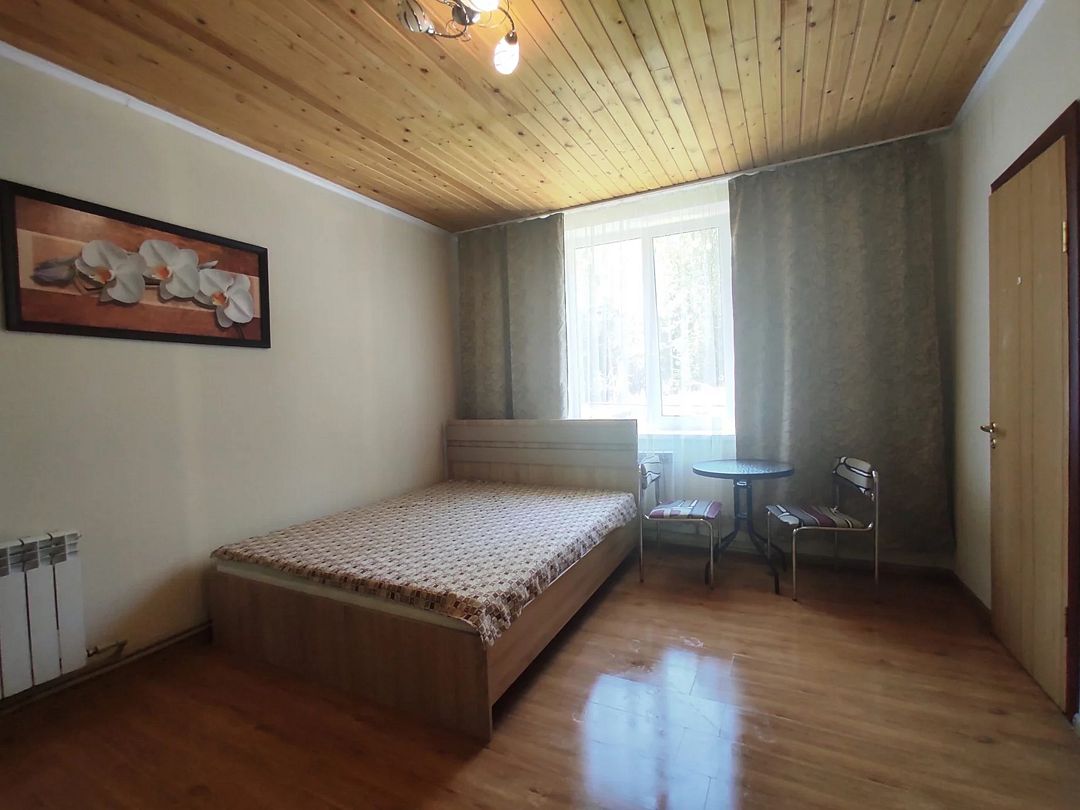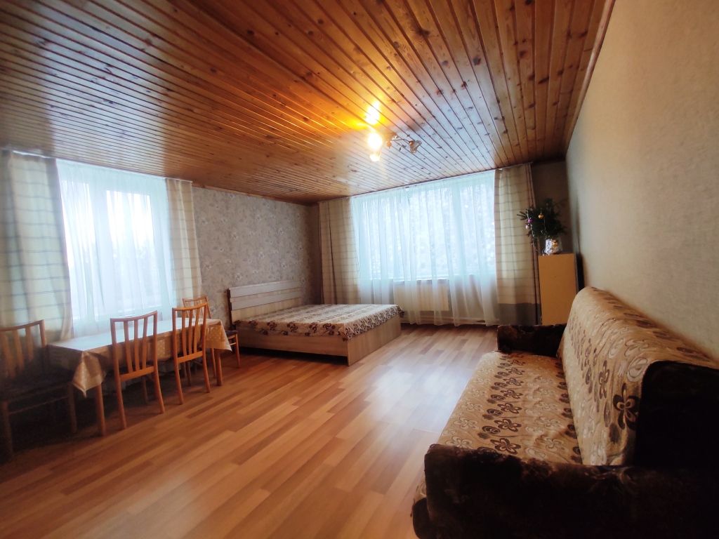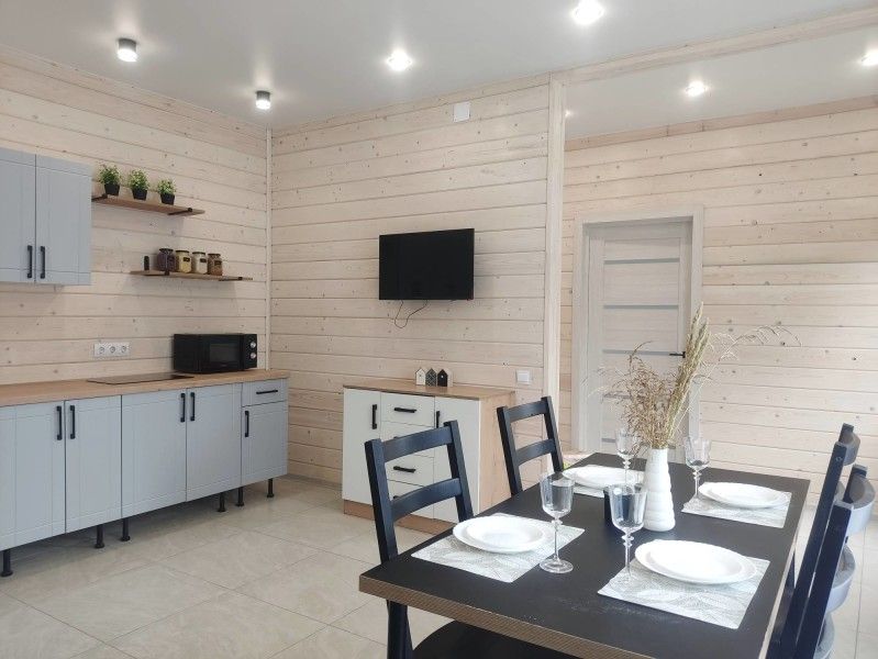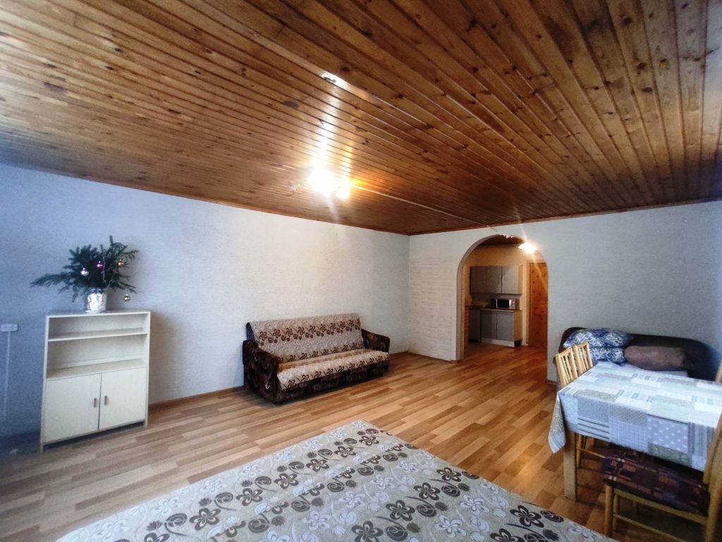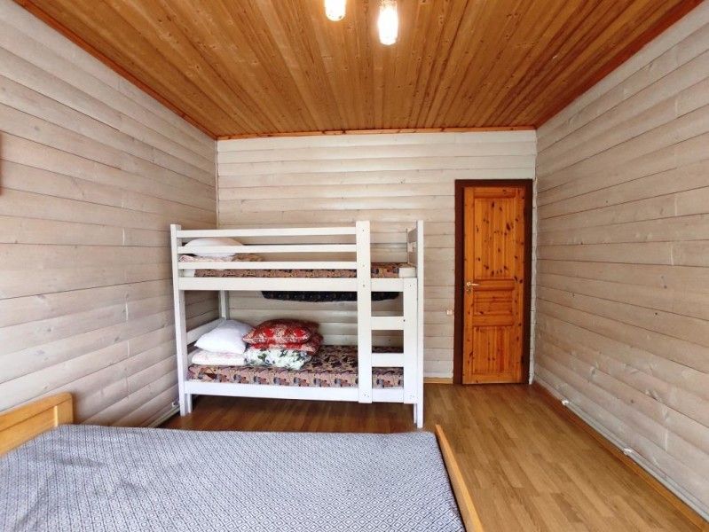 3 отдельные комнаты, в каждой двуспальная кровать и двуспальный диван. Гостиная. Санузел, душ. Кухня, холодильник, набор посуды, постельное белье. Отдельная беседка, русская печь, мангал.