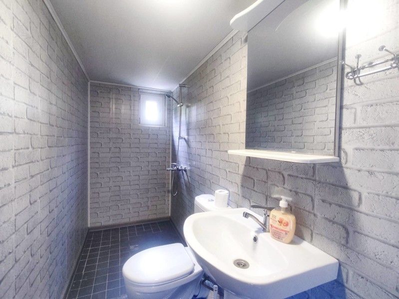 В номере: двуспальная кровать, диван-кровать, постельные принадлежности, белье, холодильник, чайник, микроволновка, тарелки, чашки, столовые приборы, полотенца для рук. Личный душ и санузел.