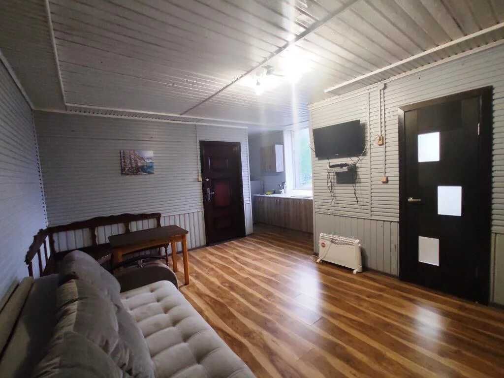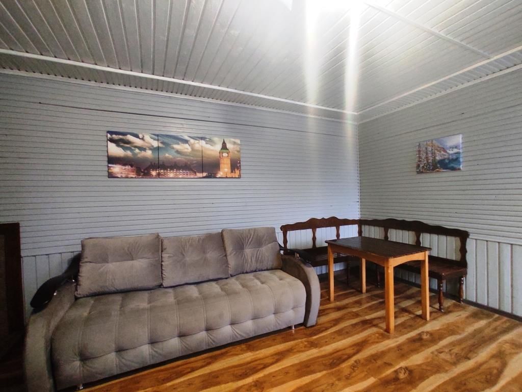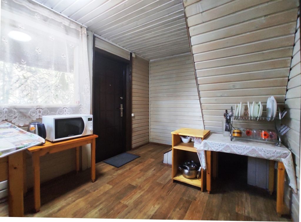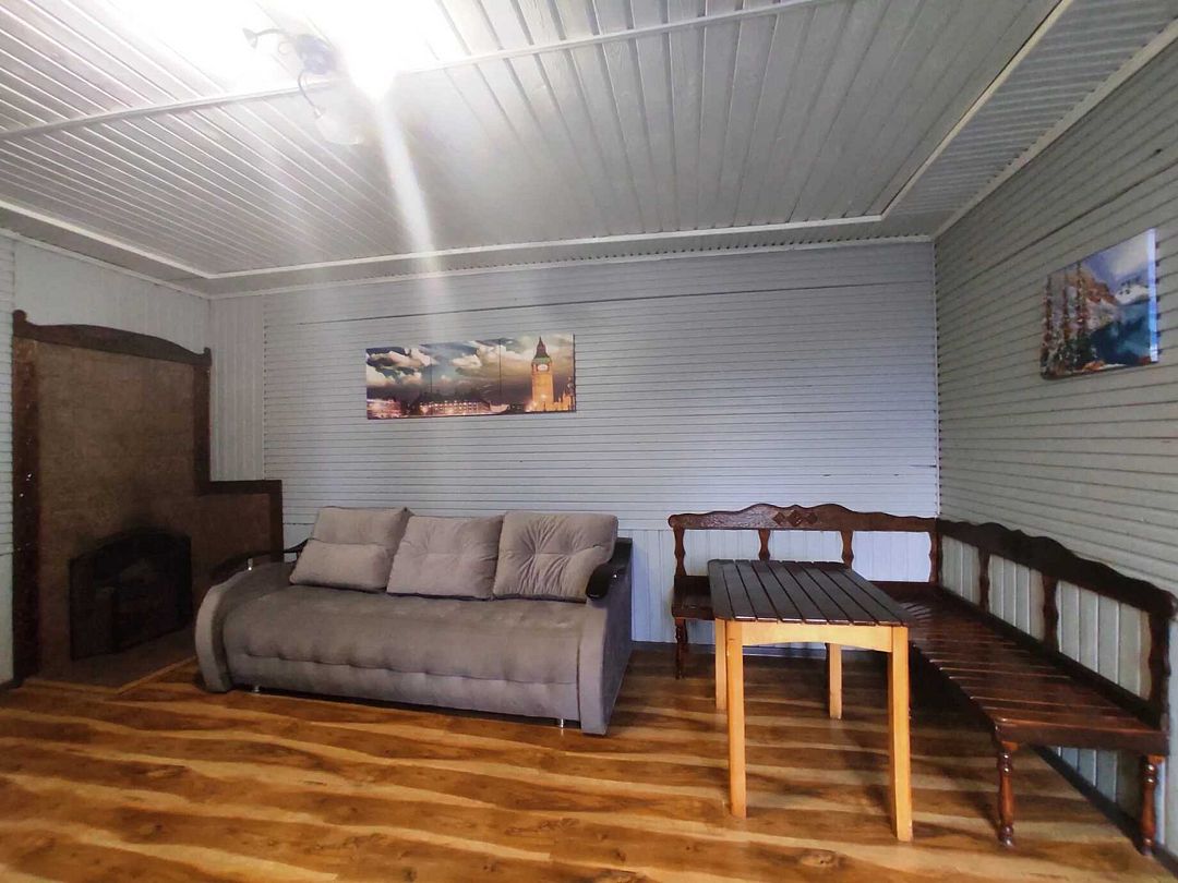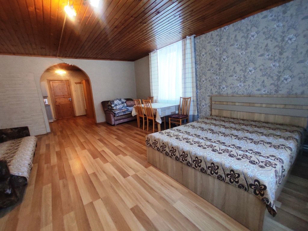 В номере двуспальная кровать, диван, чайник, постельные принадлежности, белье, полотенца для рук, холодильник, санузел. Душ общий на этаже. Размещение до 3 человек. Номер расположен на 2-м этаже. Общая кухня: плита, набор посуды, чайник, холодильник. Беседки и мангалы на территории-бесплатно.