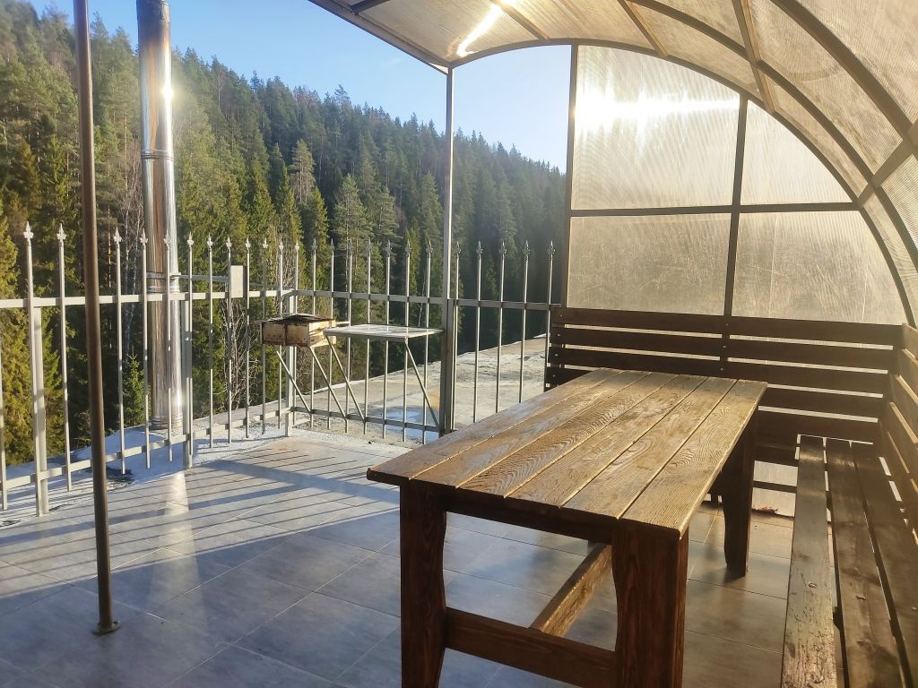 Отличная банька на берегу реки. Природное джакузи в скале. Терраса для отдыха.