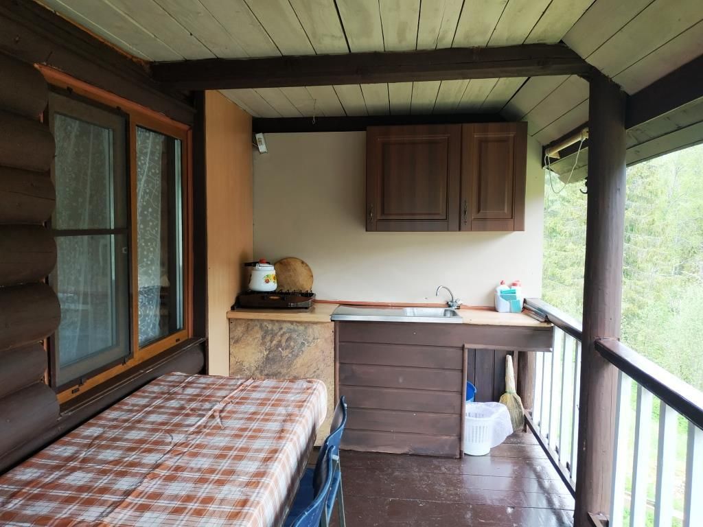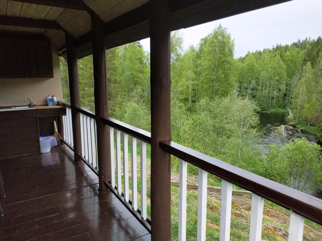 Уютный бревенчатый домик в русском стиле. Терраса с выходом на реку.