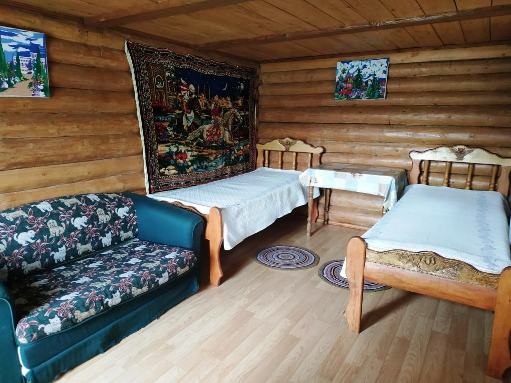 Одна двуспальная кровать, одна диван-кроватьВ срубе