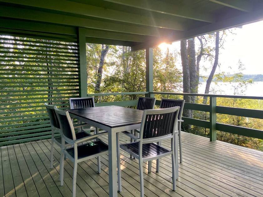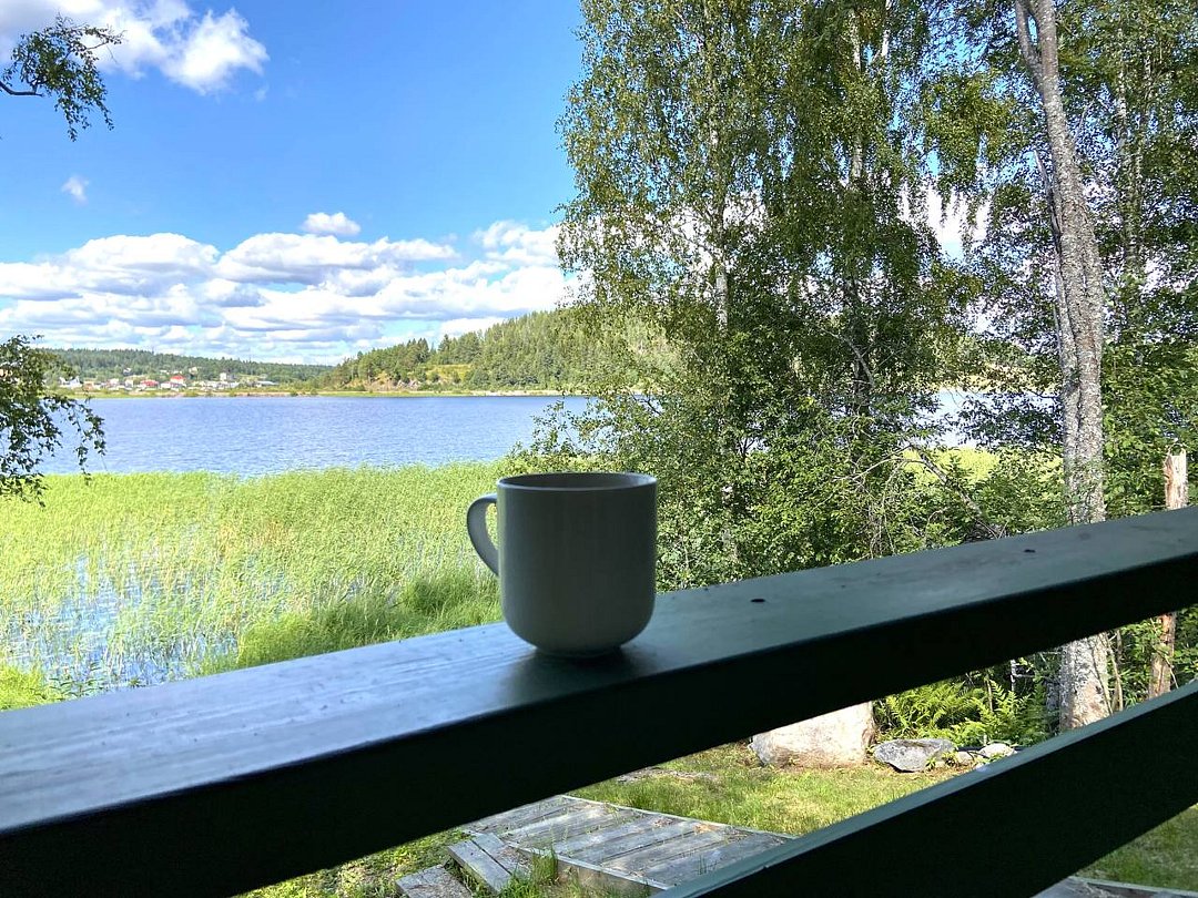 Насладитесь захватывающими видами карельской природы из больших панорамных окон этого уютного дома, расположенного прямо на берегу озера.