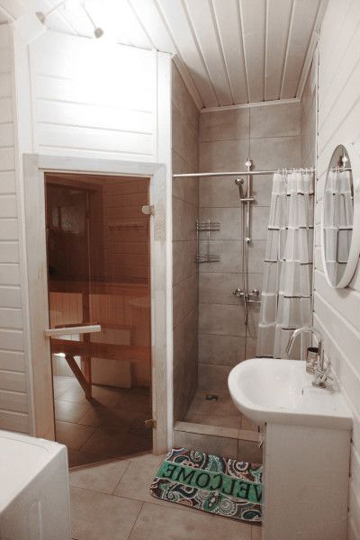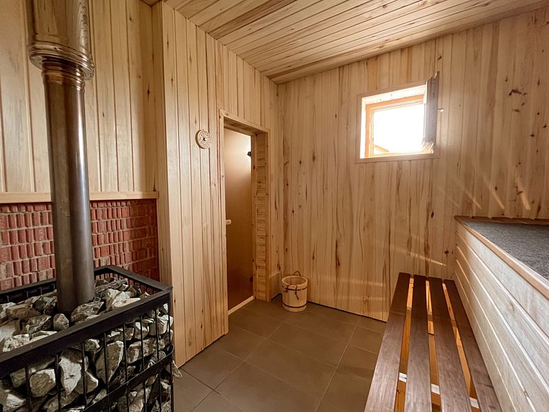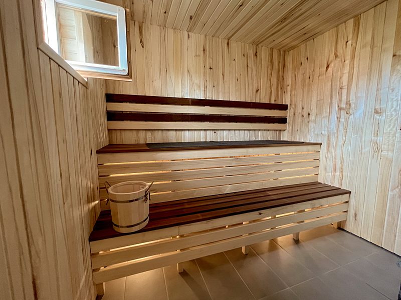 Большие дома оборудованы саунами. Удобные и просторные сауны, где вы можете сами регулировать температуру. Так же есть все необходимое для сауны — веники, шапочки, полотенца.