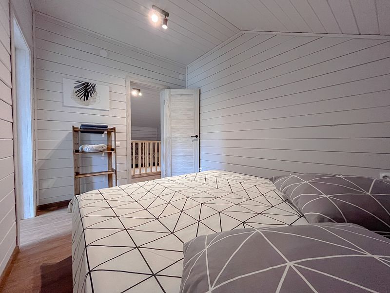 На 2 этаже: три изолированные спальни, в каждой спальне 2-х спальная кровать. Между спальнями располагается раскладной 2-х спальный диван.