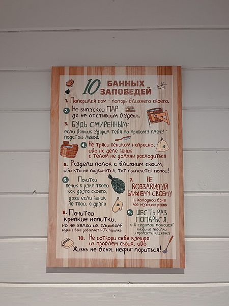 Стоимость: аренда бани — 10 000 ₽ / 3 часа до 6 человек (+1 человек 1000 ₽).