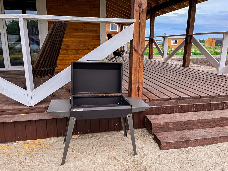 Рядом с коттеджем располагается мангал.