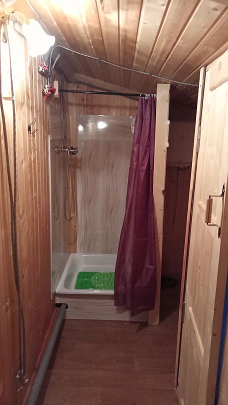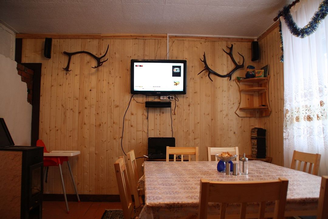 В гостевом доме (2 комнаты, кухня, гостиная) 10 спальных мест: 3 двухъярусные кровати, двуспальная тахта, раздвижной двухместный диван. Печное отопление – восстановленная старая русская печь, дровяной камин. Кухня укомплектована посудой. Имеется керамическая электроплита, холодильник, столовая, ЖК-телевизор, домашний кинотеатр, караоке.