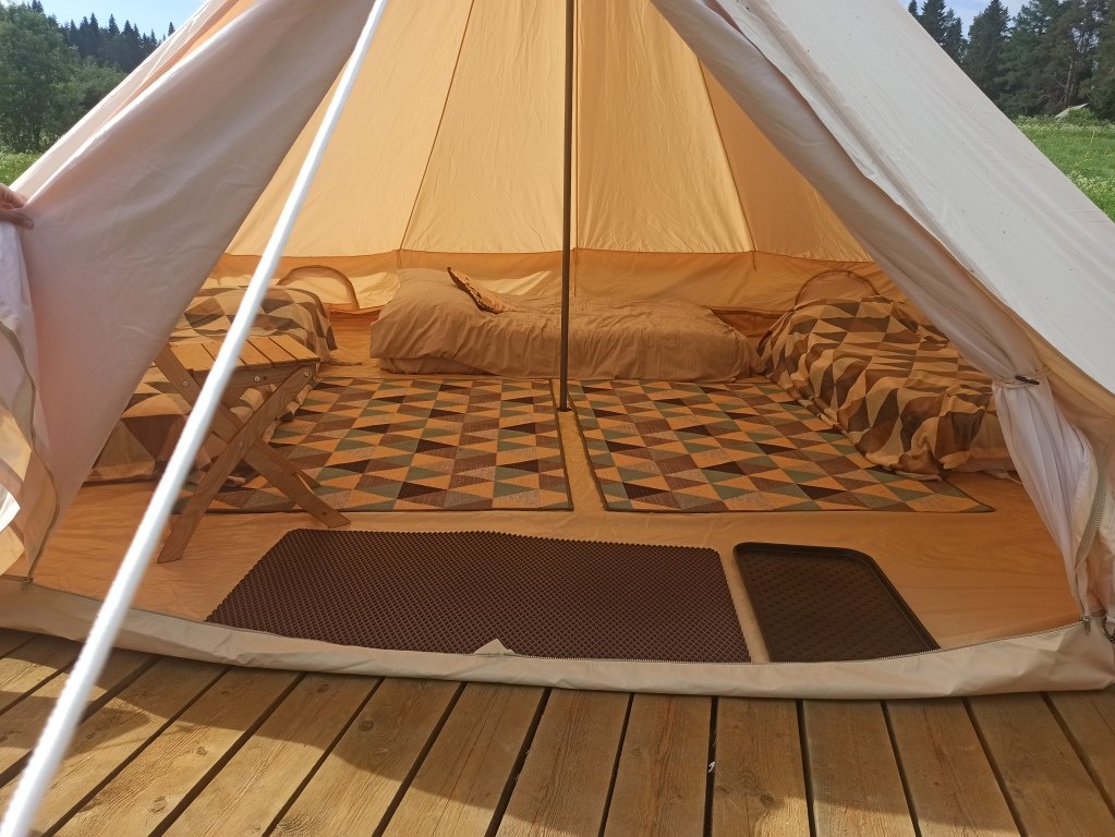 Семейный отдыхДостоинстваКарелия встретила нас гостеприимно и покорила красотой! Провели чудесные дни у озера, в уютном шатре. Особая благодарность за простыни с подогревом - настоящий комфорт! Отдохнули душой и телом, зарядились энергией для дальнейшего путешествия. Спасибо за незабываемый отдых!
