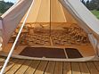 Просторный шатер «Сосна» оборудован тремя одноместными кроватями. Ортопедические матрасы, простыни с подогревом. При необходимости можно добавить раскладушку.