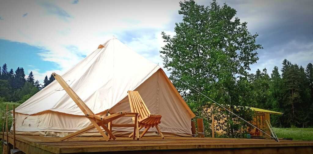 Семейный отдыхДостоинстваПросто сказка! Потрясающие виды, озеро, скалы, лес... Комфортные шатры с удобными кроватями и простынями с подогревом. На территории есть душ, туалеты, зона для готовки с всем необходимым - от кофеварки до холодильника. Мы чувствовали себя как дома, спасибо!