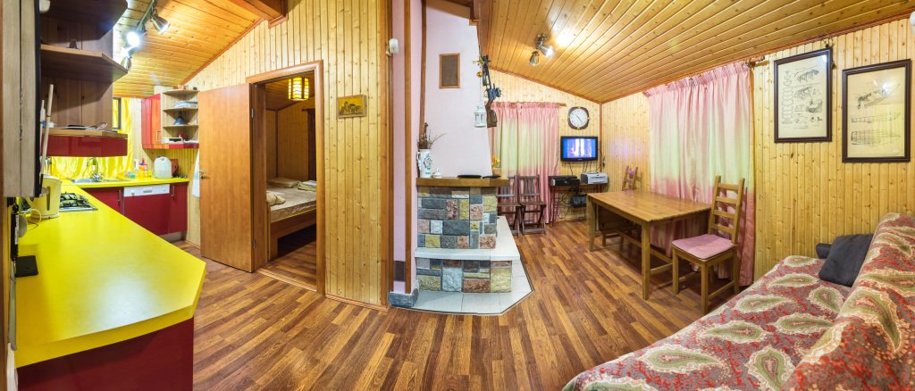 В доме есть все удобства (горячая и холодная вода, канализация). Внутри дома есть камин и плита на дровах, а также настоящая баня с душем. На кухне находится газовая плита.
