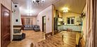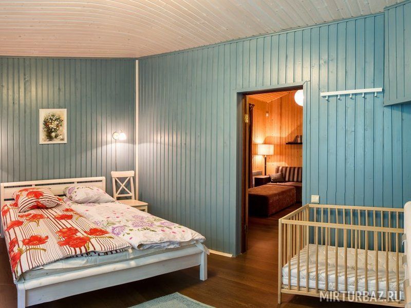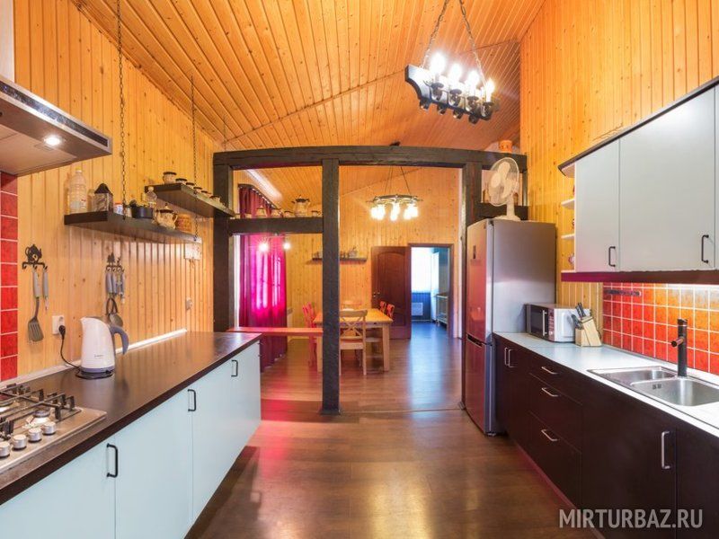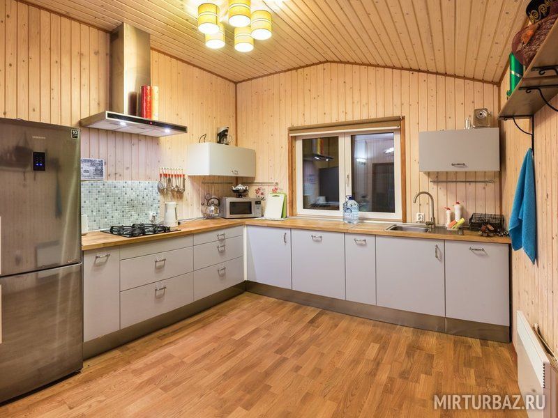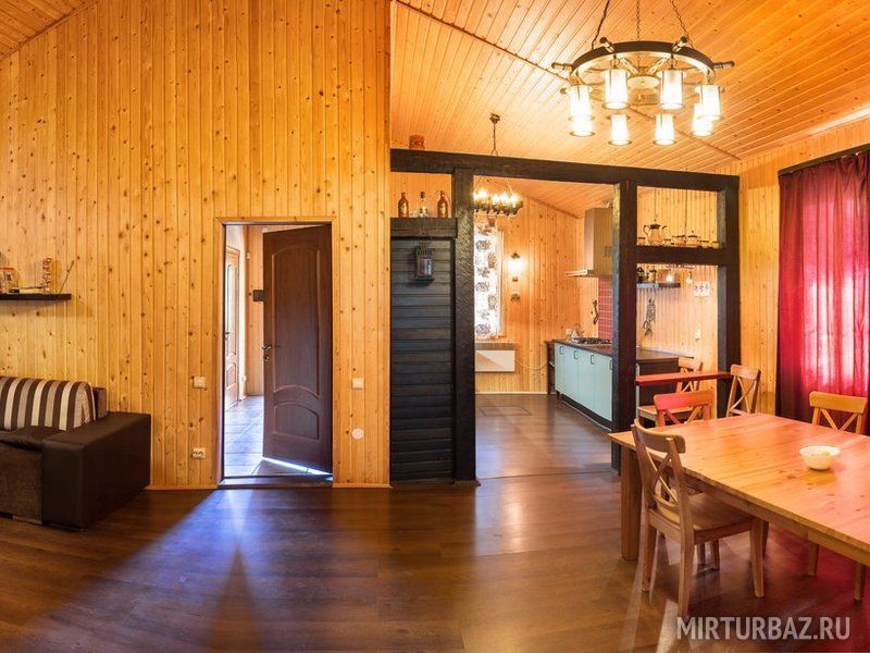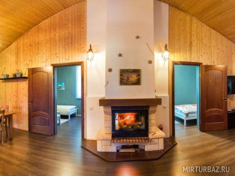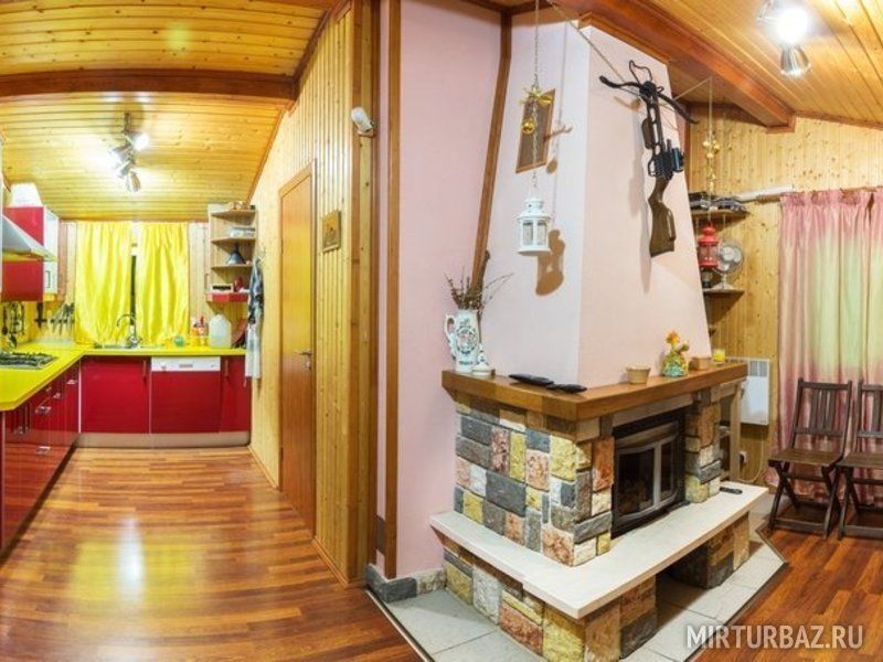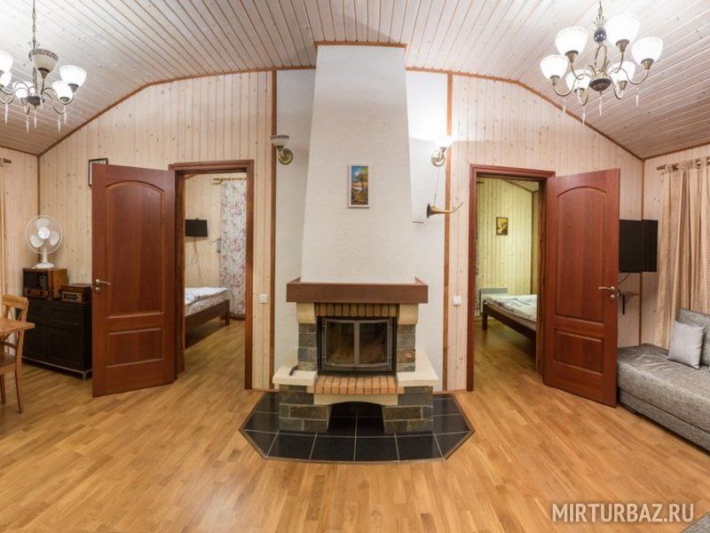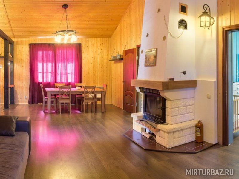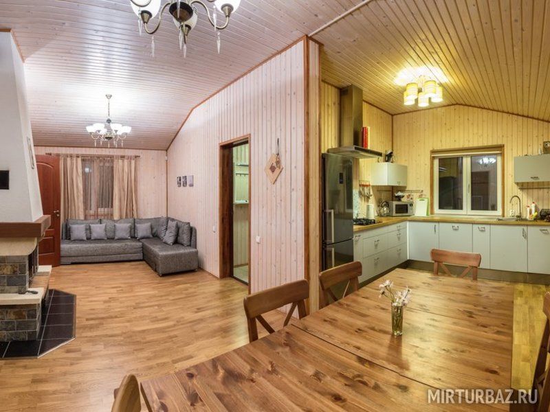 Оснащен новой современной мебелью, сантехникой, аудио-видео и бытовой техникой, спутниковым ТВ. В гостиной находится камин. Отопление: теплый пол, электроконвекторы. Есть все удобства (горячая и холодная вода, канализация). Рядом находиться баня, входит в стоимость.