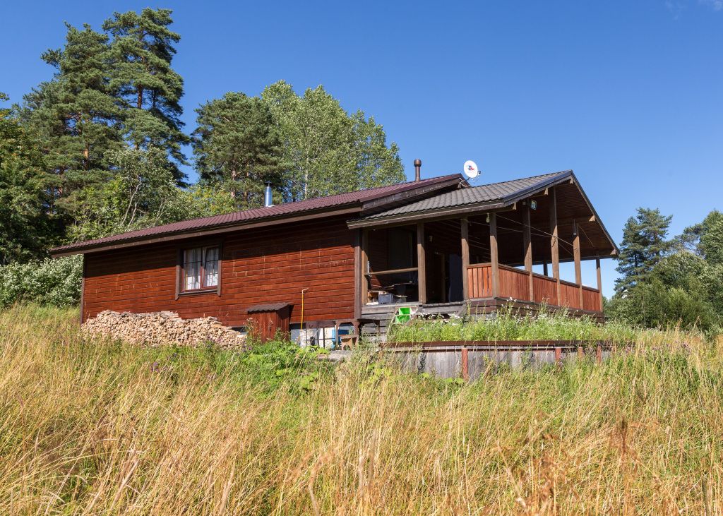Обшит деревом, кровля — металлочерепица, окна — двойные стеклопакеты.