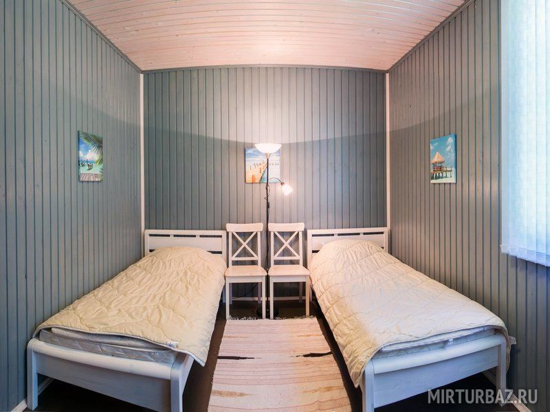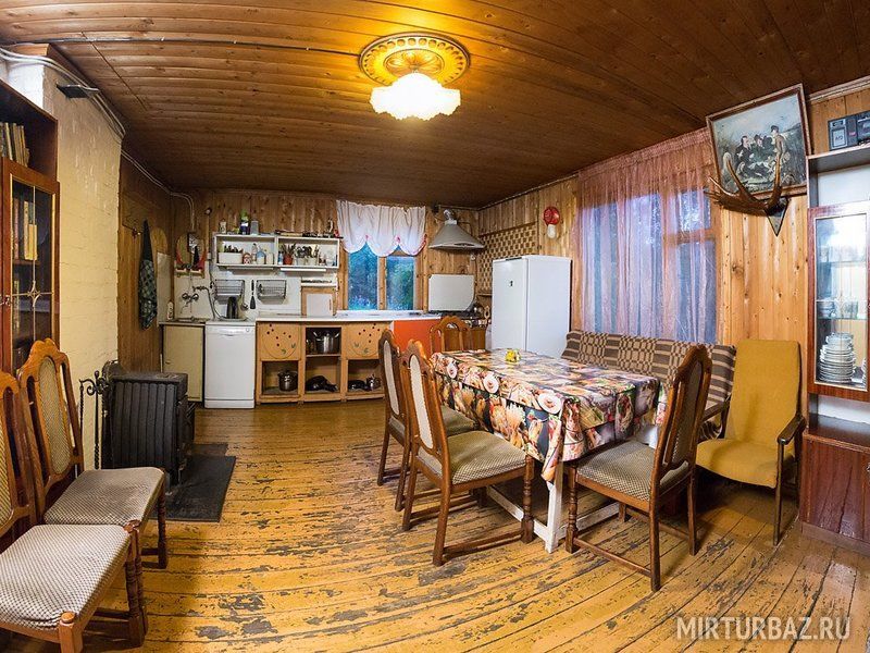 Первый этаж: веранда, кухня-столовая с печью и холодильником, спальня на четыре кровати, теннисный зал, с/узел, баня.