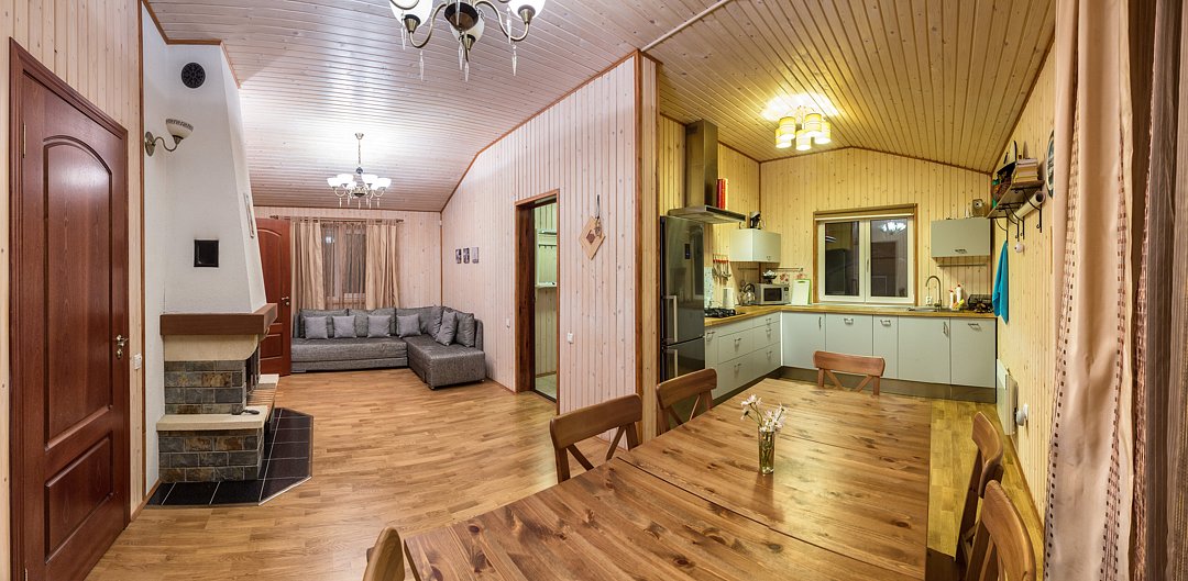 Современный одноэтажный коттедж и баня на дровах. Баня предоставляется бесплатно для аренды только гостям этого дома.