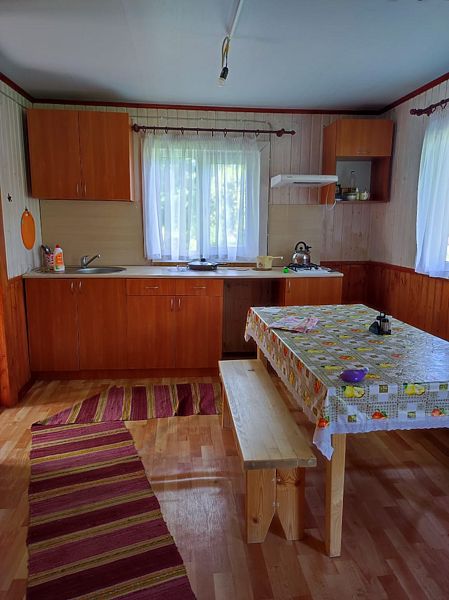 В доме две комнаты на 4 человека. Внутри всё обустроено для комфортного проживания.
