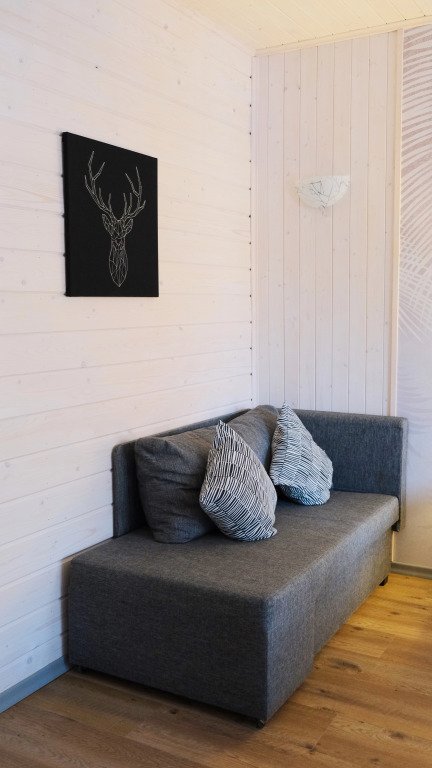 Номер оборудован одной двуспальной кроватью/двумя односпальными кроватями и диван-кроватью. К услугам гостей просторное место для хранения вещей (шкаф и комод), холодильник, чайный набор, обеденный стол со стульями, место для приготовления барбекю, дополнительные подушки и одеяла.