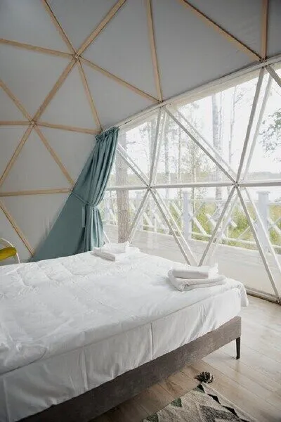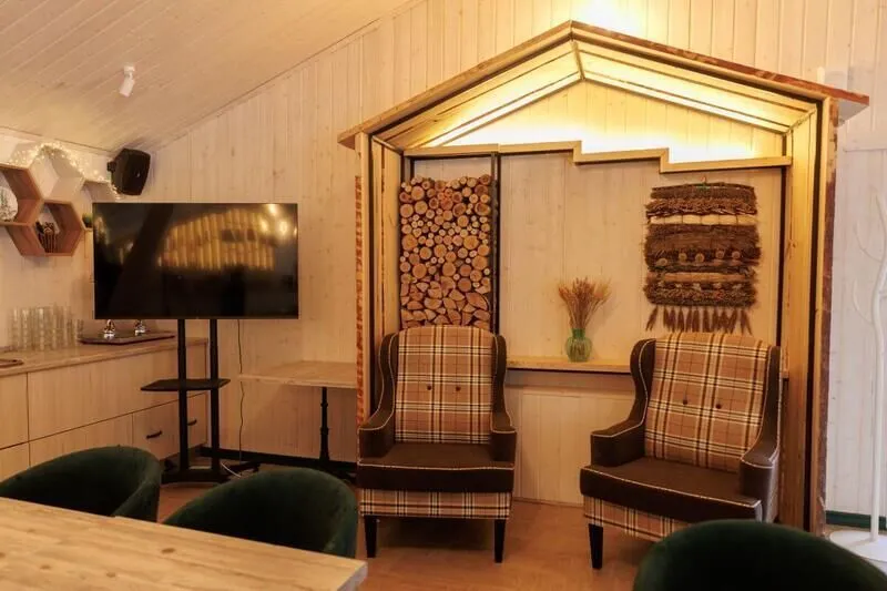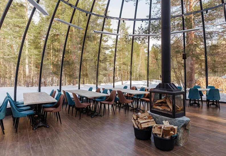 К ресторану «Лес» примыкает купольный банкетный зал на 65 посадочных мест. Здесь можно провести мероприятие любого формата: тренинг, корпоратив, семейное торжество, свадьбу.