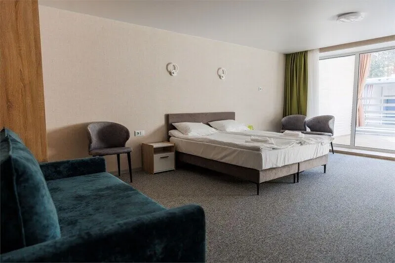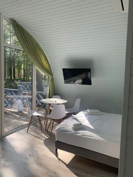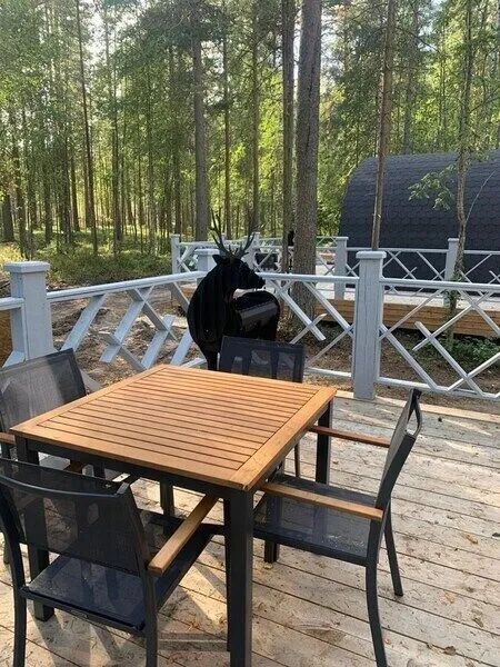 Семейный отдыхДостоинстваМы провели несколько дней в хвойном лесу, и остались в полнейшем восторге! Лес прекрасный, с чистейшим воздухом и огромным количеством черники… На территории оборудованы дорожки, по которым приятно гулять среди деревьев. Количество комаров минимальное, что очень радует. Есть озеро, мы отлично поплавали на сапах, (есть аренда, но у нас были собственные) За время отдыха даже успели рыбку поймать 😊 Завтраки в ресторане были разнообразными и очень вкусными Вечером мы жарили шашлык на мангале. Вокруг много интересных мест и достопримечательностей. Номер, в котором мы жили вчетвером, был уютным и безупречно чистым. Благодарим за отличный отдых!